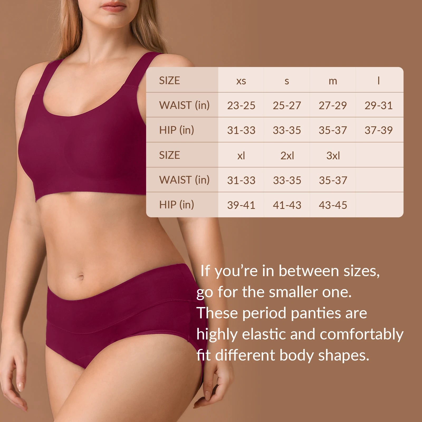 Featuring cutting-edge leak-proof technology, these period panties offer multi-layer protection. The inner layer quickly absorbs menstrual flow, while the middle layer locks in moisture to prevent leaks, keeping you stain-free. Additionally, our odor-control system ensures you stay fresh and confident, no matter what your day brings.