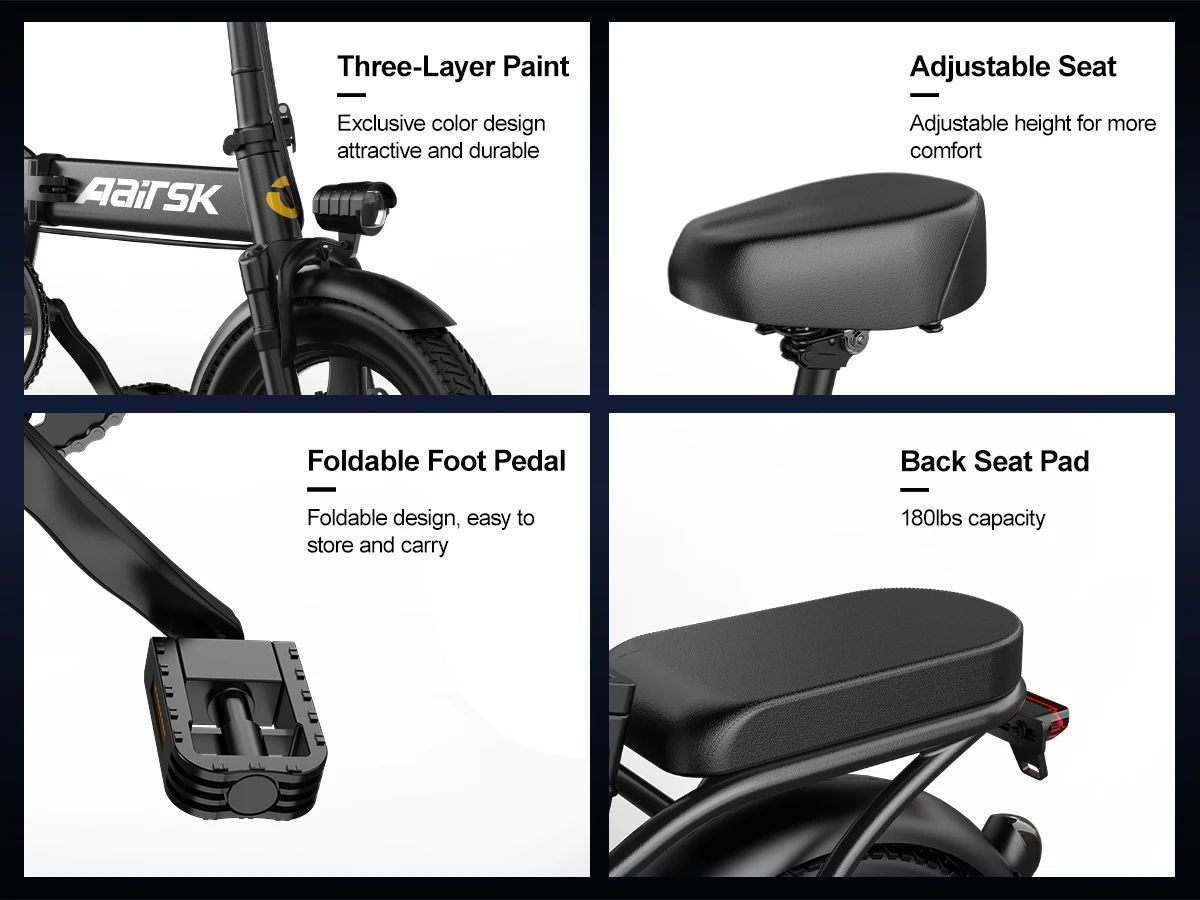 Aairsk F6 Adult E-bike 500W Motor Ebike 480WH10Ah Battery Electric Bike 14 Inch Tire Women's Electric bicycle