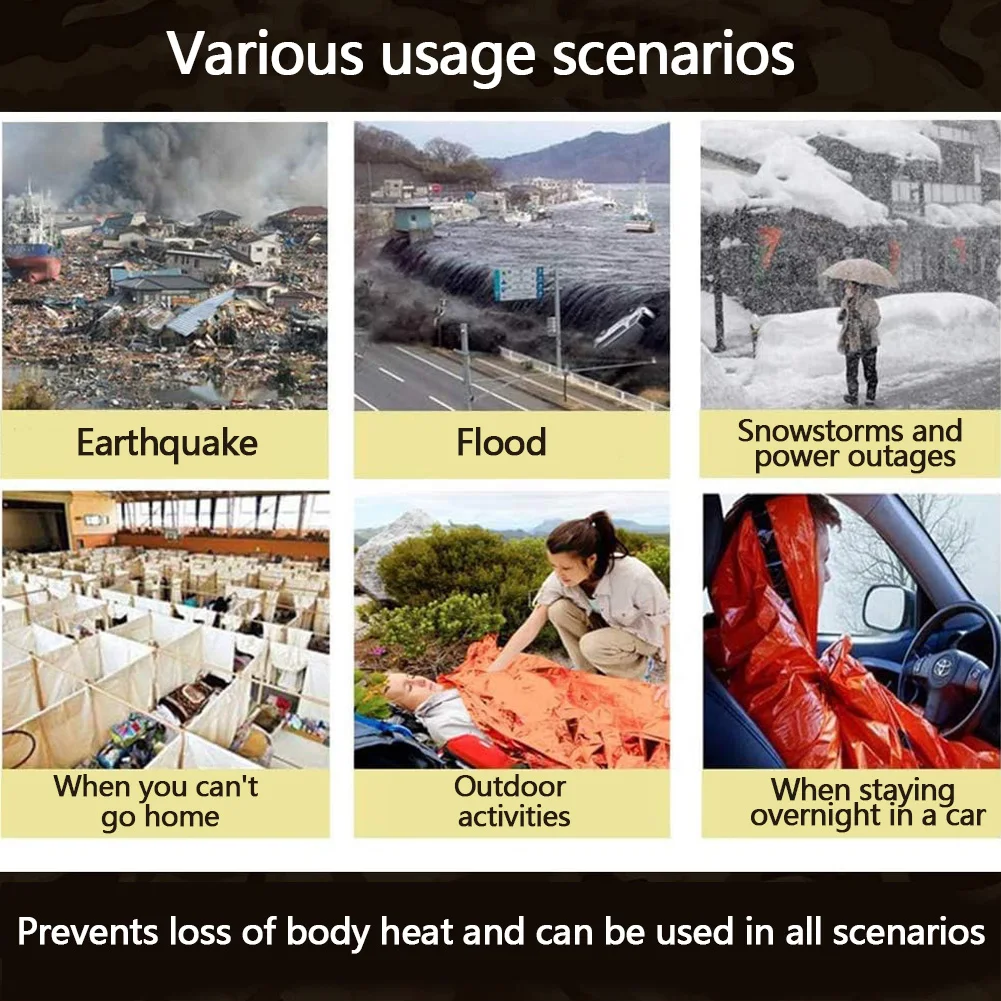 4. Versatile Survival Tool: Beyond its use as a emergency blanket, it can function as a camping blanket, poncho, tent floor, tarp, or even for collecting water or melting snow, adding significant value to outdoor survival and disaster preparedness.