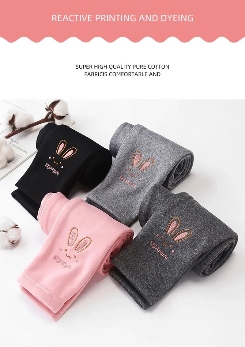 Girls Winter Thick Warm Leggings With Cute Rabbit Print
