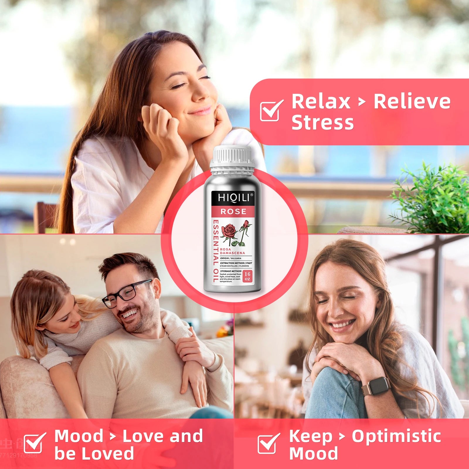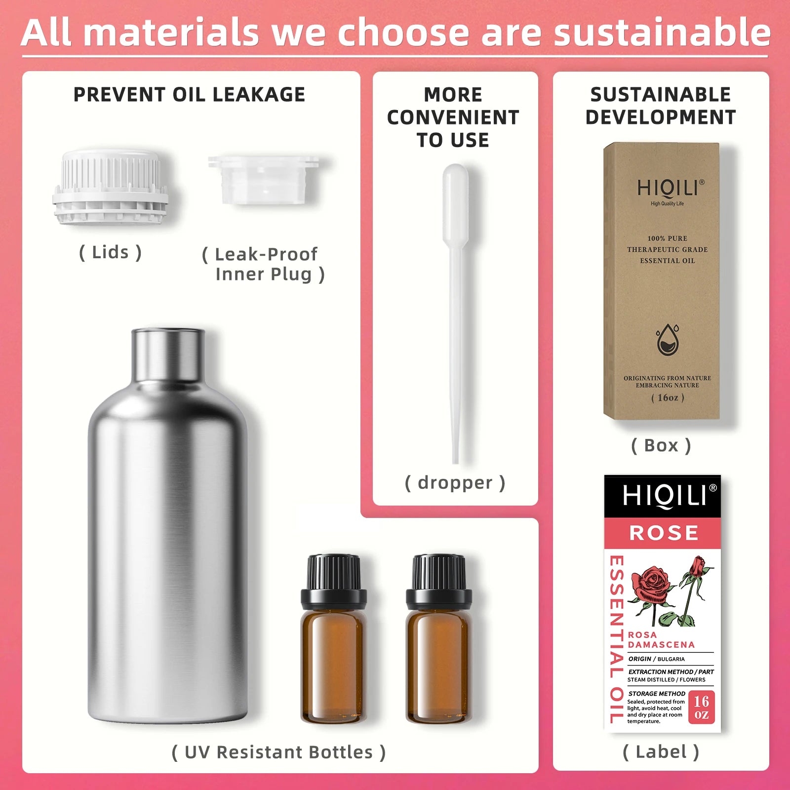 HIQILI Pure Rose Essential Oil for Diffuser Aromatherapy Skin Care