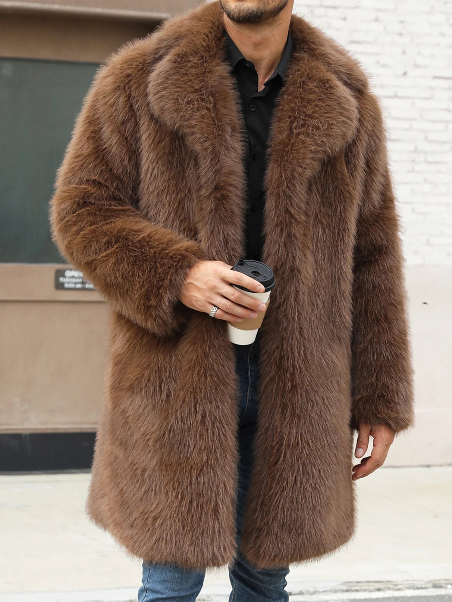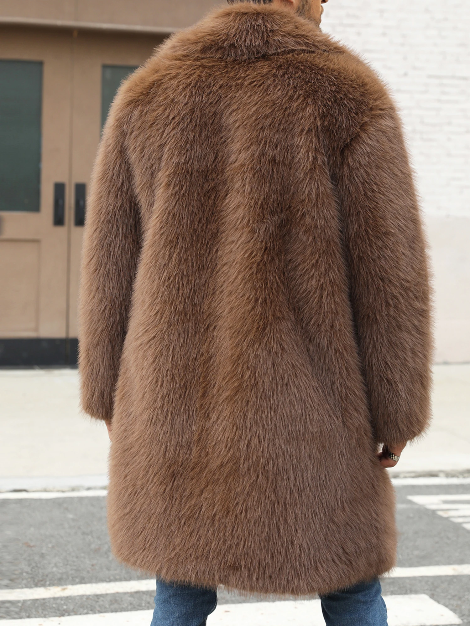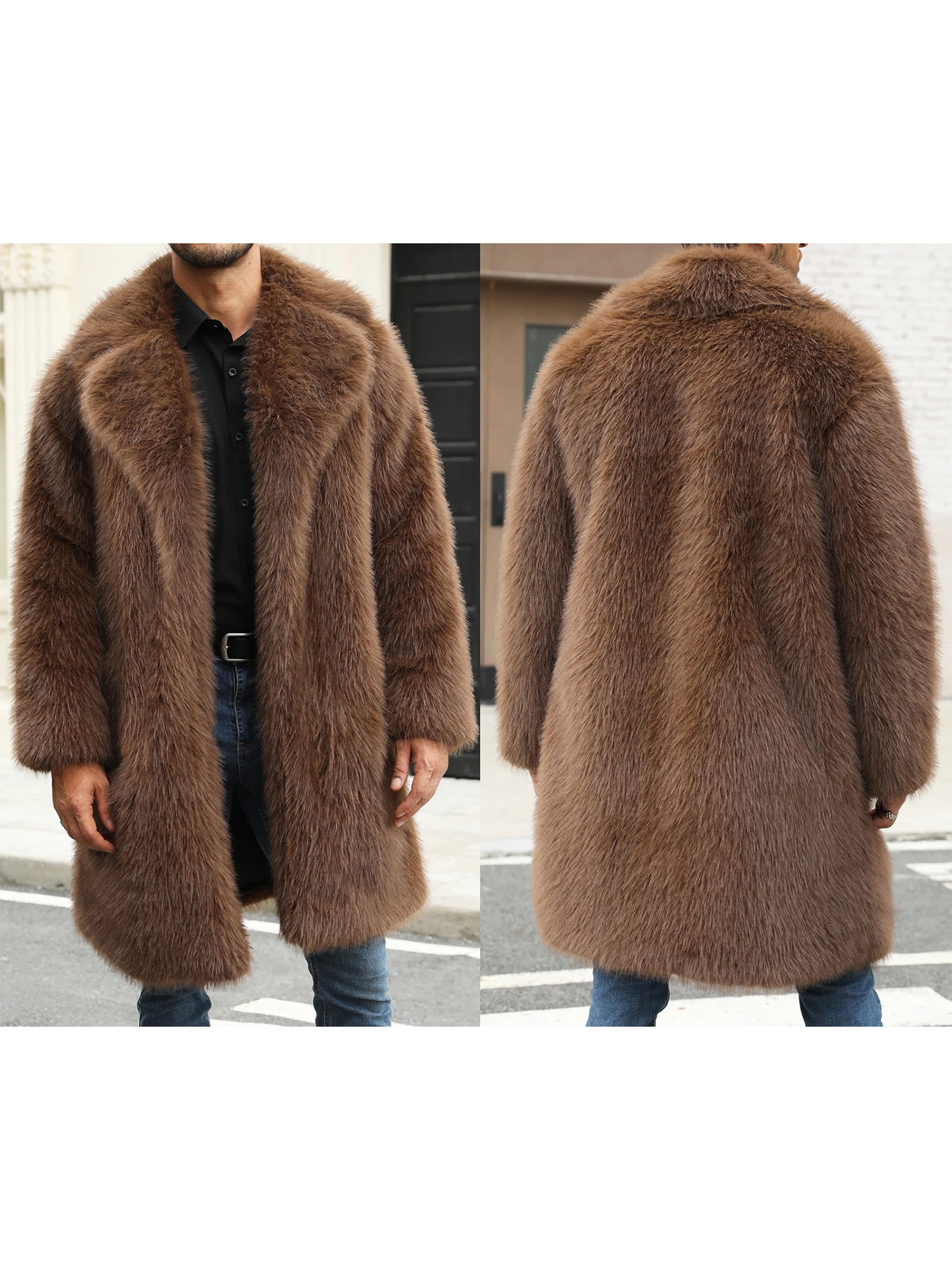 Mens Faux Fur Coat Winter Warm Long Sleeve Lapel Collar Open Front Jacket Overcoat OutwearFeatures: