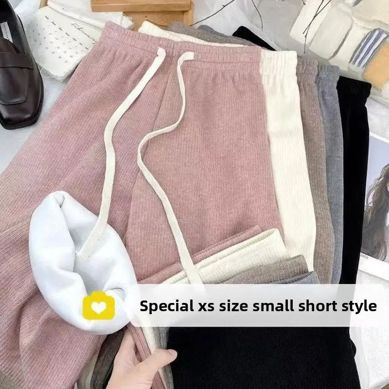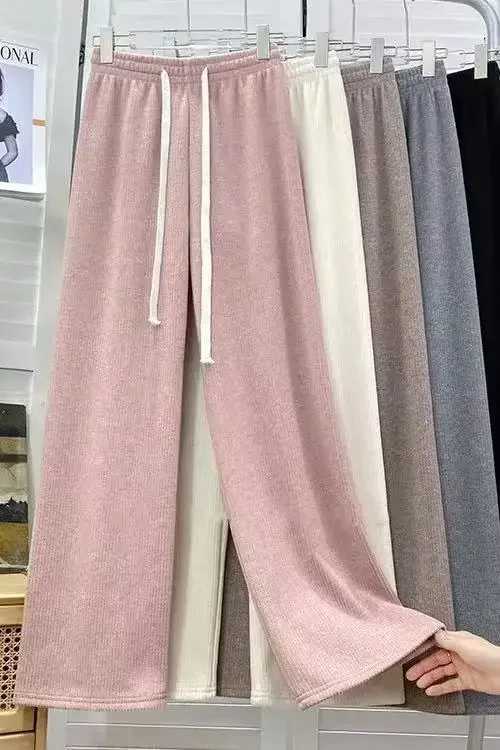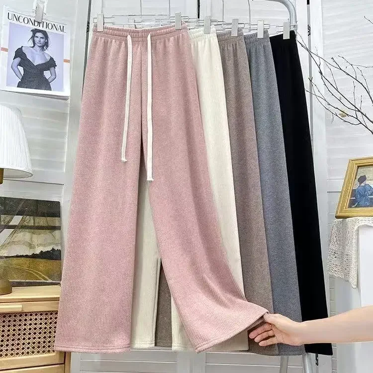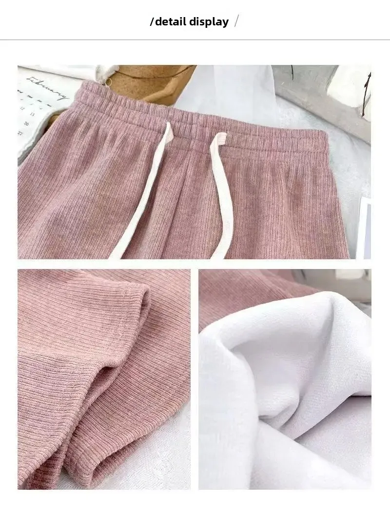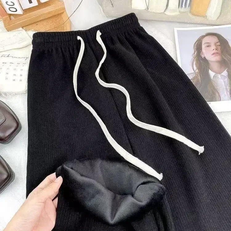 Hebei Craft Of Weaving Winter Cashmere Fleece Lined Wide Leg Pants High Waist