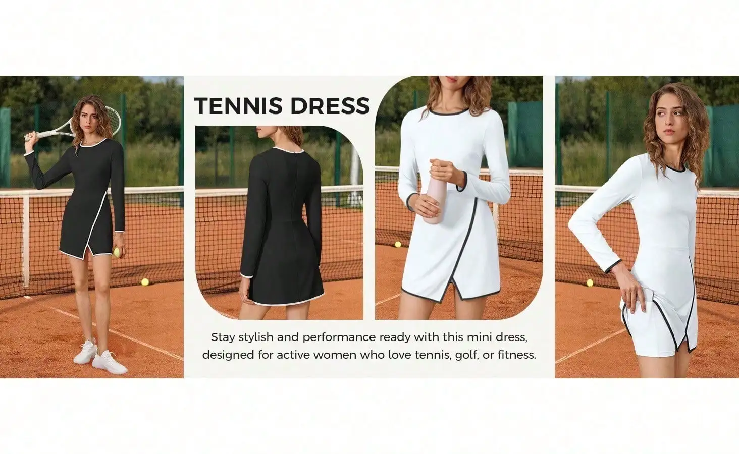 Material: Athletic dress is made of soft, breathable fabric, so that you can stay cool in summer, stretchy fabric of mini dress gives you no restrictions in training or daily life 2-in-1 Tennis Dress: Workout dress with built-in shorts for a total coverage, so you can move without hindrance; In addition, pockets are added in undershorts are great for storing your essentials Feature: Fashion meets functionality with this gorgeous tennis dress; Features a long sleeve, crewneck, built in bra, shorts and pockets, slim fit, split, back zip, a line, contrast colors Occasion: Fashion mini dress are perfect for tennis, golf, hiking, running, workout and any other of your favorite sports & daily wear Wash Instruction: Machine wash with cold water, similar color washing, hang dry, do not bleach; ( If you use hand wash, the clothes will be more durable )